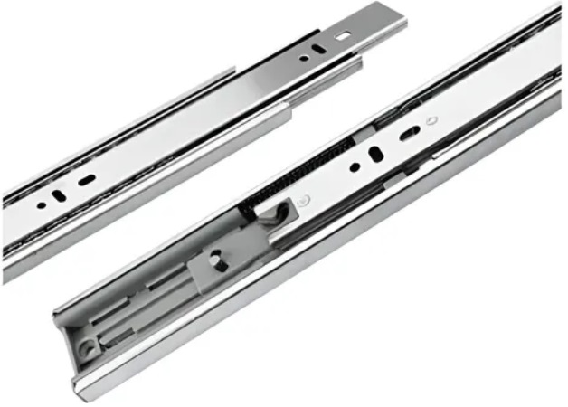 Corrediças com amortecedores estabilizam o fechamento suave e sem batida das gavetas, estrutura em aço com laminas reforçadas elas são as melhores opções para projetos que requer mais força, carga de peso e estabilidade das gavetas ao abrir e fechar com mais suavidade, firmeza (baixa vibração), e tudo isso para proporcionar seu deslizamento perfeito, é feito por grandes esferas o que também auxilia na distribuição de peso.